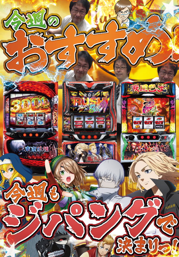 今週末もマイルド系の機種からバキバキのハイスペック系の機までじっくりと打ち込みたくなる超広角なジパングワールドをビシッと練り上げていきますので、ぜひ中野駅南口でお楽しみください!