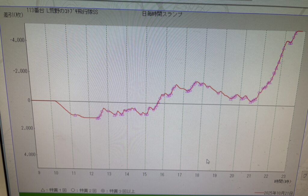 昨日の月間ランキング更新は残念ながらありませんでしたが、最新導入機種の荒野のコトブキ飛行隊から終盤に貫いた上位AT突入を目撃しました♪