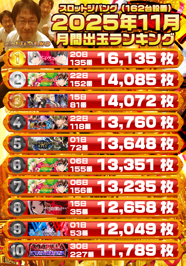 バーニングエクスプレスの導入はありませんが新台費用を抑えた分、12月初週も溢れるスロット愛と勇気とシツコイ攻め込みで日々の期待感を重視するジパングスタイルに変更は無し!