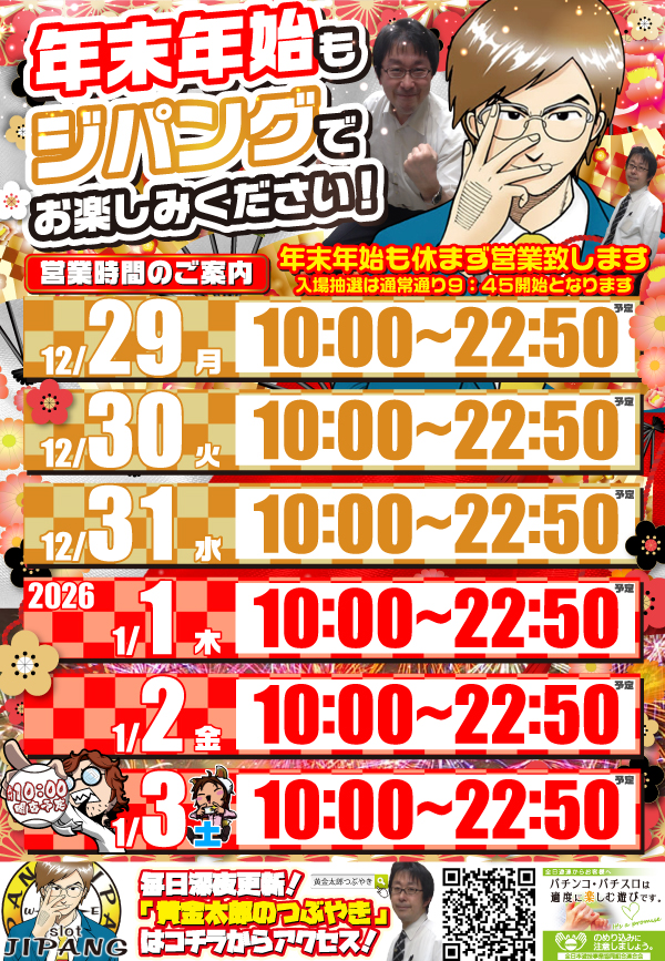 12月終盤戦もスロット打つならジパングで決まりっ!!