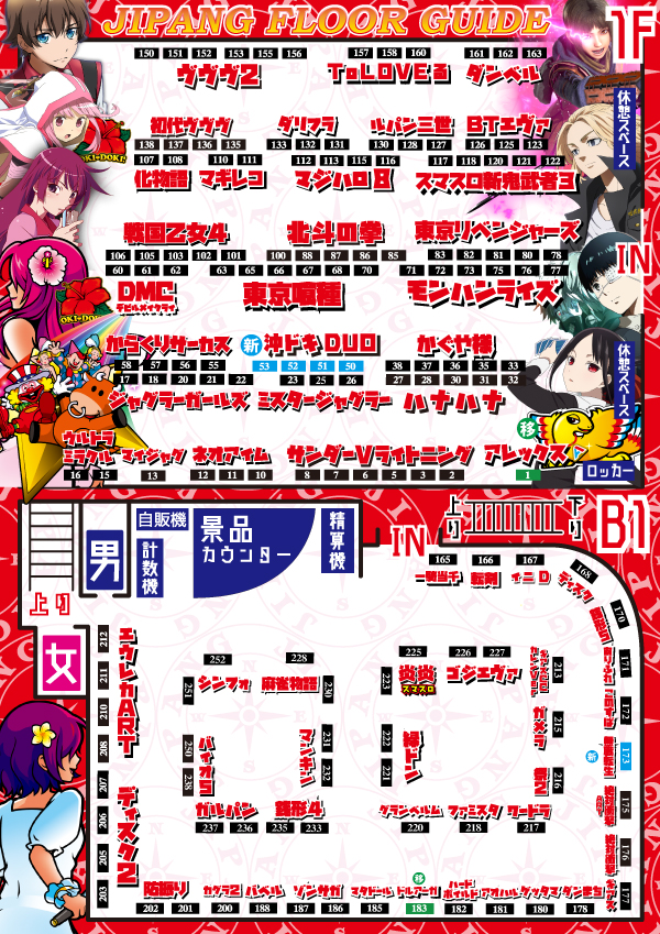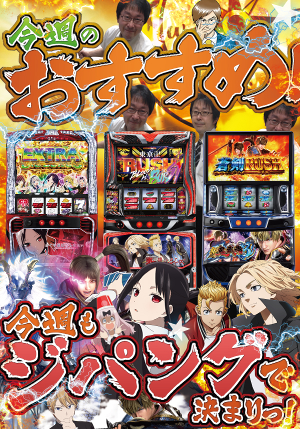 今週末もマイルド系の機種からバキバキのハイスペック系の機までじっくりと打ち込みたくなる超広角なジパングワールドをビシッと練り上げていきますので、ぜひ中野駅南口でお楽しみください!