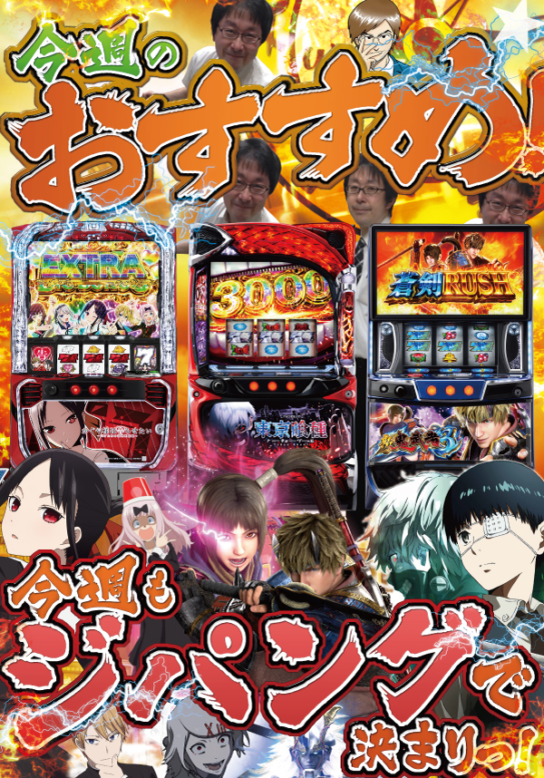本日も今冬に導入された新台・準新台はもちろん、人気・定番機種を軸に既存機種もビンビンに活性化させられるように毎日が真剣勝負の精神を全面に押し出したワクワクと心躍るジパングワールドを展開!