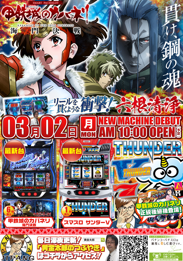 「カバネリ海門決戦」&「サンダーV(1台)」が導入されるのは、以前からお伝えしていた通りで、カバネリ海門は6台の導入となります!