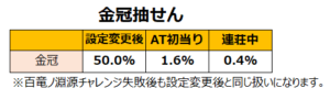 また、朝一1回目(設定変更後)・AT初当り・連荘中で抽せん値が異なります。