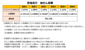 個人的には成功率にも設定差がついてるんじゃなかろうかと邪推してましたが、今回ので設定差はなく一律で70.1%ということが明らかになりましたね!
