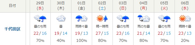 ただ、前日のつぶやきでも書きましたが、今週というか今年の大型連休中はかなり傘マークが多め…!